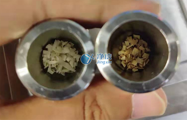 上圖為1分鐘的研磨效果,已經(jīng)完全研磨至粉末。效果非常好,蠶繭研磨一定要凍液氮,因?yàn)樾Q繭韌性極高,常溫研磨難度極高,之前老師了解過刀式研磨儀損耗也多,而且產(chǎn)熱容易變質(zhì),后續(xù)老師還會(huì)做到更多生物兼容性材料如滌綸、ps、pcl等等,凈信研磨儀都完全能勝任,經(jīng)過多次了解和對(duì)比所以老師們選用凈信研磨儀代替人工處理。效率高,效果好,很好的解決了老師的研磨問題。