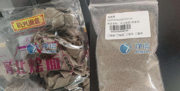 刀式研磨儀對(duì)河北燴面的研磨前后效果圖