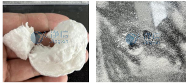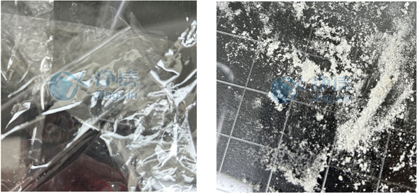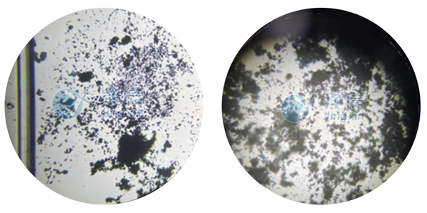 經(jīng)全自動(dòng)浸入式液氮冷凍研磨儀處理后的PVA和絲素蛋白在肉眼觀察下,呈現(xiàn)細(xì)膩的狀態(tài)。通過(guò)顯微鏡觀察,和以前用舊款儀器研磨的樣品對(duì)比發(fā)現(xiàn),無(wú)論是在低倍還是高倍狀態(tài)下,通過(guò)凈信研磨儀處理的樣品的顆粒細(xì)膩程度都較優(yōu)。舊款儀器處理的樣品在高倍鏡下觀察還存在一定程度的組織結(jié)構(gòu),而凈信研磨儀處理的樣品已成均勻顆粒狀。