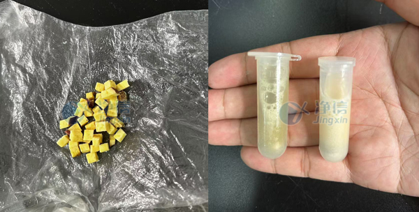 我們可以看到,番薯已經(jīng)研磨完全,可以進行后續(xù)離心純化。儀器自帶冷凍,可以很好的保持RNA活性。采用一次性,無菌無酶的的研磨管和研磨珠,冷凍研磨儀可以很好的避免樣品污染,一批可以處理的樣品多樣,可以高效快速的進行批量RNA提取。