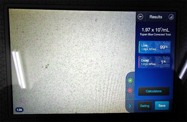 顯微鏡觀察細(xì)胞,使用染色緩沖液重懸細(xì)胞調(diào)整細(xì)胞濃度,吸取細(xì)胞懸液至流式管中,準(zhǔn)備染色