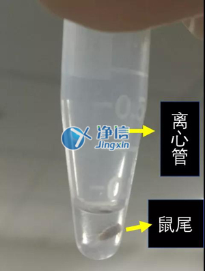 在以小鼠為模式生物進(jìn)行科學(xué)研究的實(shí)驗(yàn)室中,日常和基本的一個(gè)實(shí)驗(yàn)就是提取它們的遺傳物質(zhì)DNA(脫氧核糖核酸)進(jìn)行基因型鑒定,檢測這些小動物的基因組中是否含有特定的DNA。為了能夠從小鼠身上提取足夠的DNA,要從它們身上取下足量的細(xì)胞用于實(shí)驗(yàn)。為了盡可能減少對動物的傷害和方便試驗(yàn)人員的操作,我們只剪下一小段鼠尾作為實(shí)驗(yàn)樣品.
