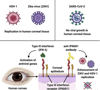 美國《細胞報告》雜志近期發(fā)表的一項研究表明,人類眼角膜對寨卡病毒和單純皰疹病毒1型易感,但似乎對新冠病毒有抵抗力。在此項研究中,專家們使用了25份角膜組織進行實驗,其中既包括人類角膜組織,也有實驗鼠供體的角膜組織,并將它們暴露于三種不同的病毒中,分別是:ZIKV、HSV-1和新冠病毒,結果發(fā)現新冠病毒沒有在角膜中繁殖。至于人角膜和結膜如何能夠抵抗新冠病毒,該研究團隊還不能完全確定。