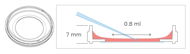 The μ-Dish 35 mm, high comes with a thin ibidi Polymer Coverslip Bottom that has the highest optical quality (comparable to glass) and is ideally suitable for high-resolution microscopy. It is also available with a #1.5H Glass Coverslip Bottom for TIRF or single molecule microscopy.