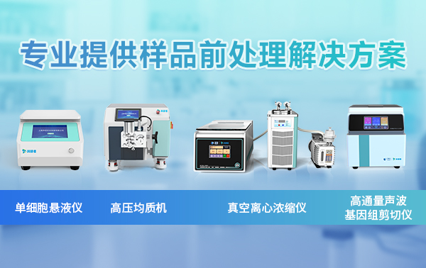 在生命科學(xué)、生物醫(yī)藥等前沿研究領(lǐng)域,可靠的樣品前處理設(shè)備是實驗成功的基礎(chǔ)。上海凈信旗下“科研者”系列產(chǎn)品(真空離心濃縮儀,高壓均質(zhì)機,單細胞懸液制備儀,高通量聲波基因組剪切儀),專為科研需求設(shè)計,為實驗室提供值得信賴的完整解決方案。