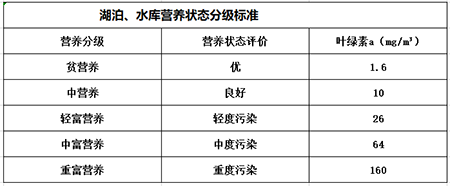 中國環(huán)境科學(xué)研究院李子成在《中國湖庫營養(yǎng)現(xiàn)狀調(diào)查分析》中對湖泊、水庫的營養(yǎng)狀態(tài)進行了分級。