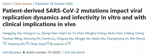 近日,李蘭娟院士團(tuán)隊(duì)等在 Cell Discovery 雜志發(fā)表了題為:Patient-derived SARS-CoV-2 mutations impact viral replication dynamics and infectivity in vitro and with clinical implications in vivo 的研究論文。李蘭娟院士團(tuán)隊(duì)從浙江大學(xué)附屬醫(yī)院收治的新冠患者中鑒定到11個SARS-CoV-2病毒株,發(fā)現(xiàn)鑒定出的突變會直接影響新冠病毒的滴度和感染能力,差異多可達(dá)1500倍。該研究提供了直接證據(jù),表明新冠病毒的自然突變會嚴(yán)重影響病毒的復(fù)制和感染能力,并影響感染者的病情嚴(yán)重性。
