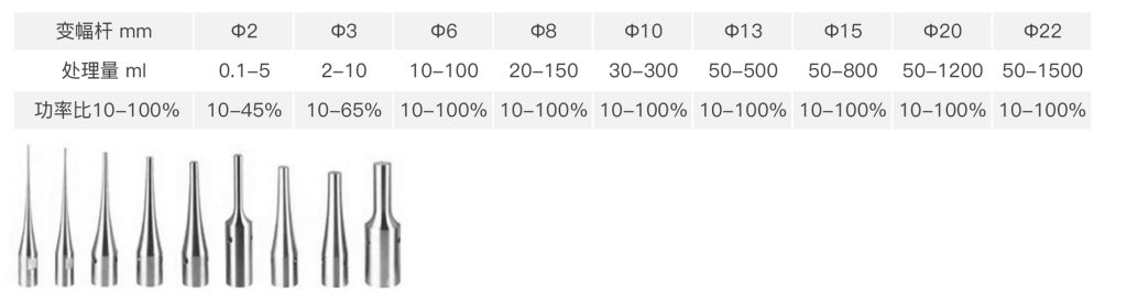 3.超聲探頭采用美標TC4材質(zhì)的高純鈦合金,探頭形狀:錐形、鞭節(jié)形,發(fā)波形式:垂直超聲